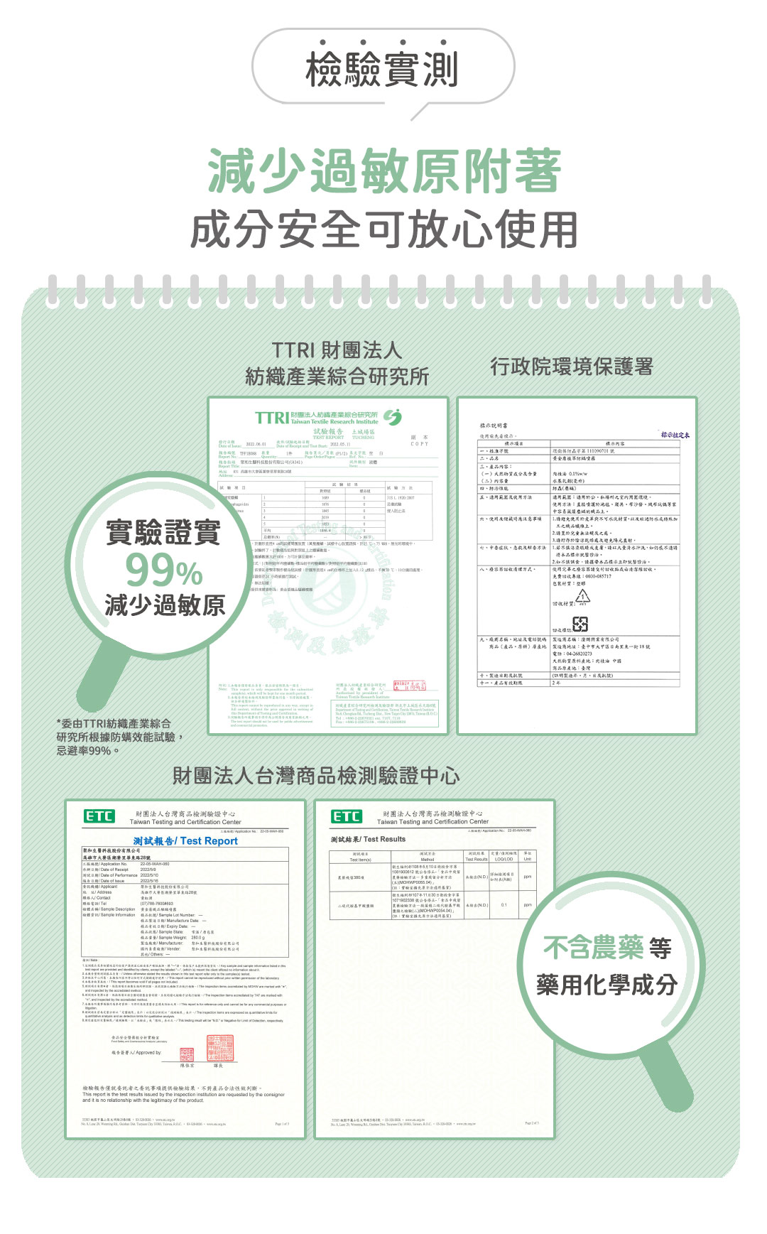 - 經TTRI測試,過敏原減少率超過99%